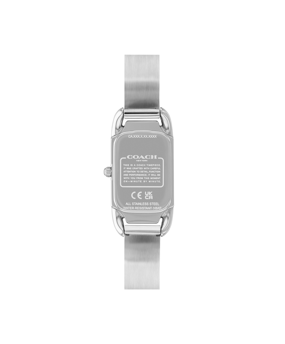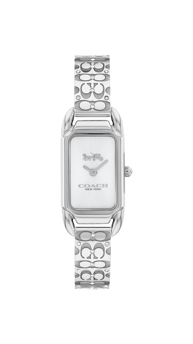 تعتبر ساعة جريسون كمثال على التطور الراقي حيث تأتي بتصميم مصقول يتيح لك إمكانية ارتدائها في كل مكان. يتميزهذا التصميم المصنوع من الفولاذ المقاوم للصدأو المرصع بحبات الكريستال بسوار شبكي و مزيج من علامات الوقت و الأرقام، يزدان شكلها النهائي بشعار ماركة كوتش كعلامة للوقت عند موضع الساعة 3.