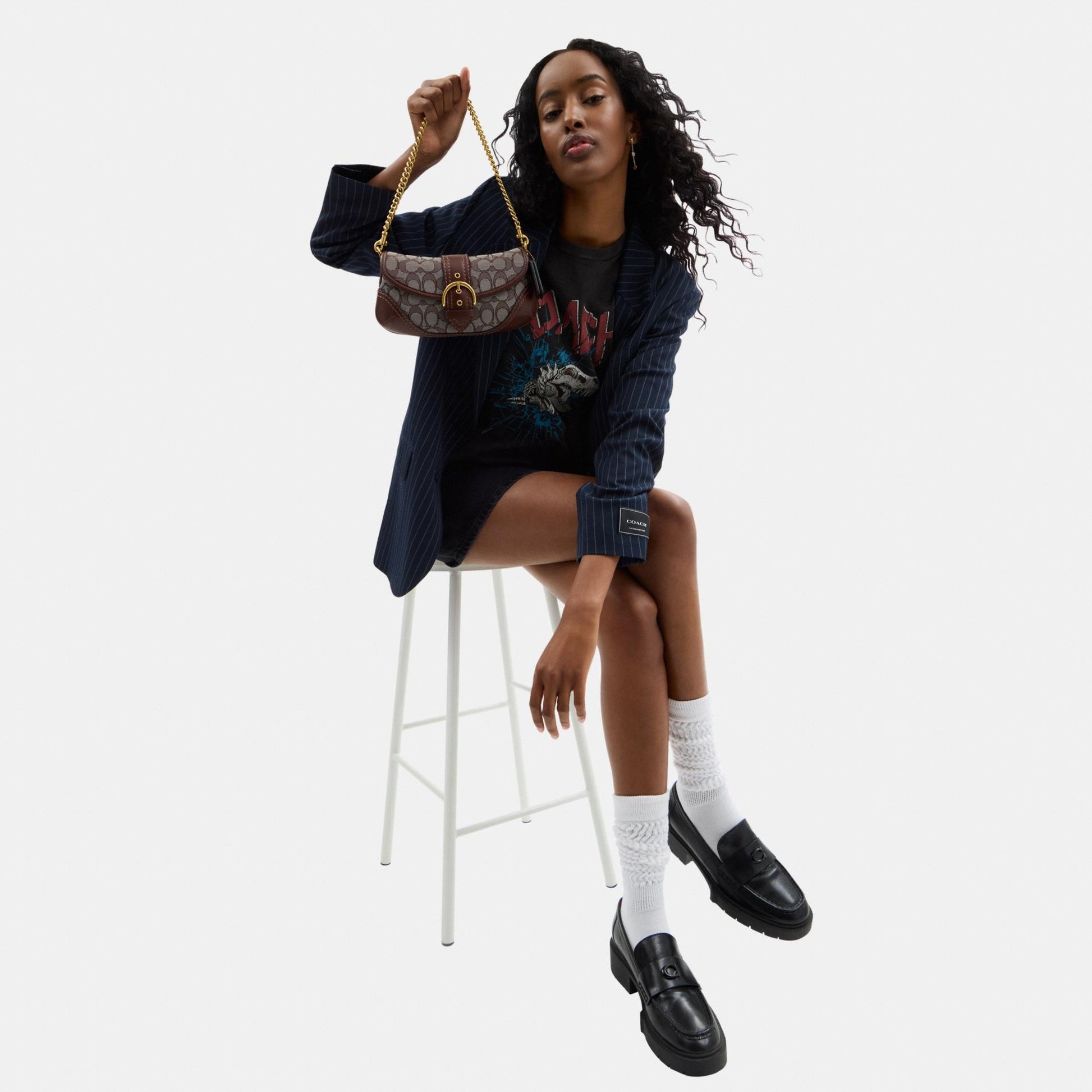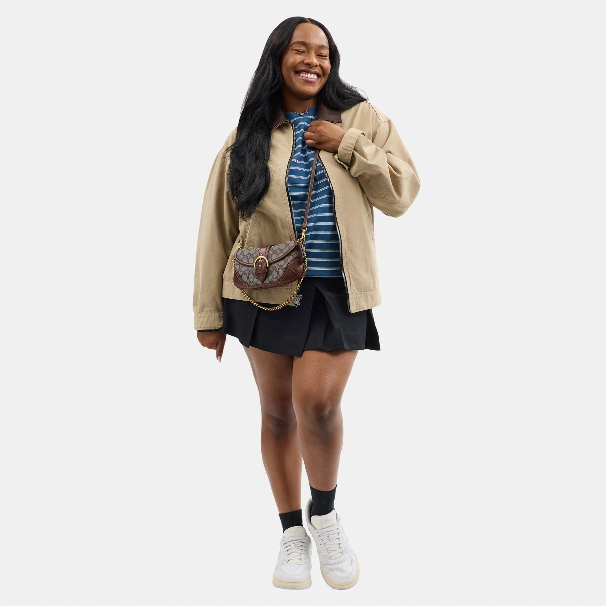 نسخة أصغر قليلًا من حقيبة "سوهو" بطية الأيقونية التي أُطلقت عام 2006، تأتي حقيبة "سوهو 25" بتصميم مدمج بواجهة أمامية بغطاء، مصنوعة من قماش الجاكار المزين بشعار كوتش خفيف الوزن. تضم جيبًا داخليًا بسحّاب لحفظ المستلزمات الصغيرة، وتكتمل بحزام قصير من السلسلة قابل للفصل وحزام كروس بودي قابل للفصل لتمنحك خيارات متعددة للارتداء. بعض التصاميم ببساطة جميلة جدًا لدرجة لا يمكن تركها في الأرشيف. قماش الجاكار الأيقوني مصنوع من مزيج يحتوي على 44% بوليستر مُعاد تدويره و56% قطن مُجدَّد، يتم الحصول عليه من مزارع تتبع ممارسات زراعية متجددة — ممارسات تساعد على الحفاظ على الأرض وتجديدها، وزيادة التنوع البيولوجي وصحّة التربة، وقد تسهم في امتصاص المزيد من الكربون. هذه الحقيبة تجسّد التزامنا المستمر بالمساهمة في تقليل أثرنا على كوكب الأرض.
