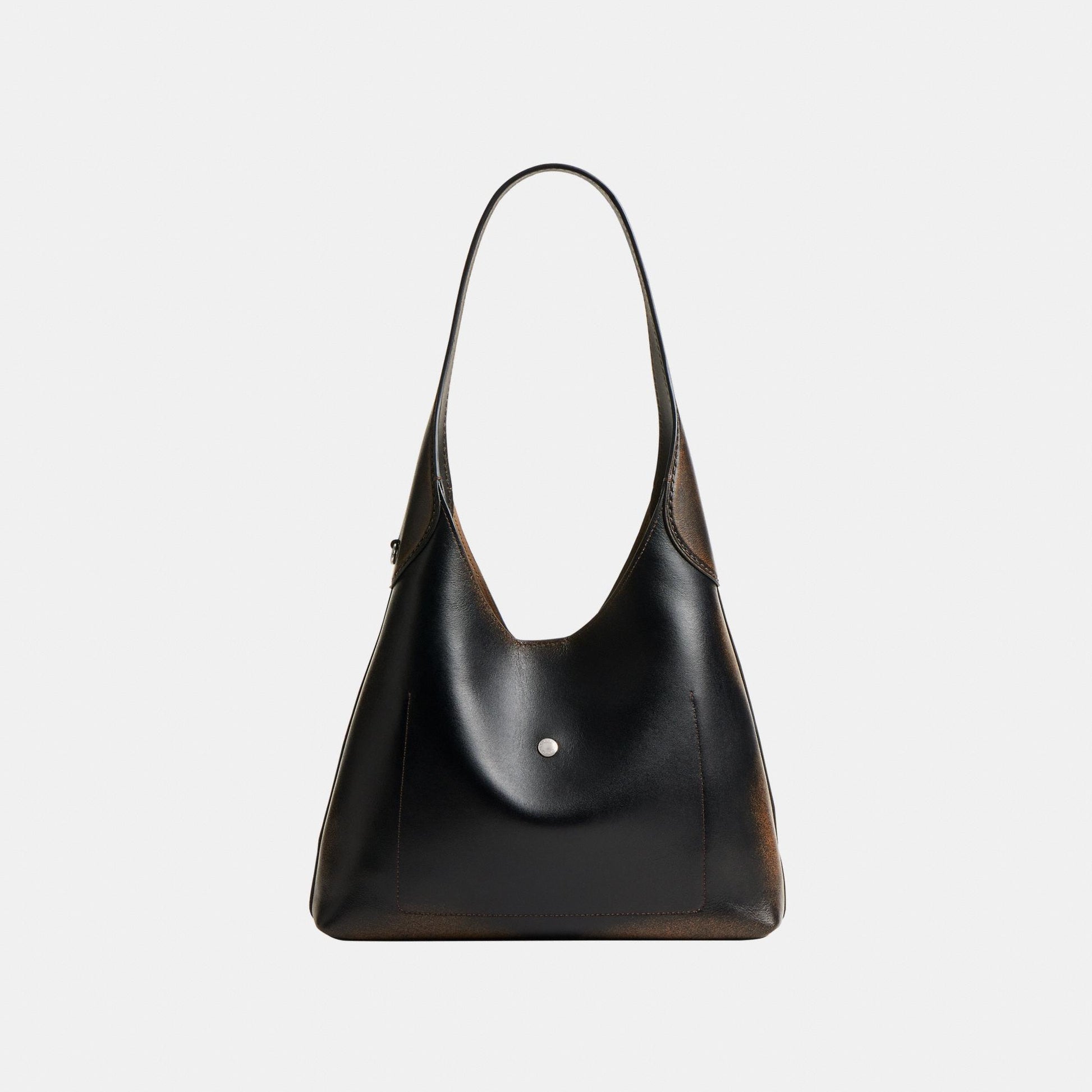 حقيبة "بروكلين" بتصميم أنيق وبسيط يعكس الروح العصرية لمدينة نيويورك. أصغر من مقاس 39، تأتي هذه الحقيبة بأسلوب الهوبو وصُنعت من جلد مدبوغ فائق النعومة بتشطيب معتّق يكشف اللون الأساسي ليمنحها مظهراً محبّباً بلمسة مستخدمة بحب. تتميّز بتصميم انسيابي بحجم 28 مع مساحة داخلية رحبة وجيب بإغلاق كبس يسهل الوصول من خلاله إلى الأساسيات. يكتمل تصميمها بحزام كتف عريض مريح، وإغلاق مغناطيسي عملي، إلى جانب مجموعة من حُلي كوتش الفريدة. كل حقيبة تُعتبر قطعة فريدة من نوعها، فلا توجد حقيبتان متطابقتان تمامًا، كما أنها تزداد جمالًا وتميّزًا مع مرور الوقت.