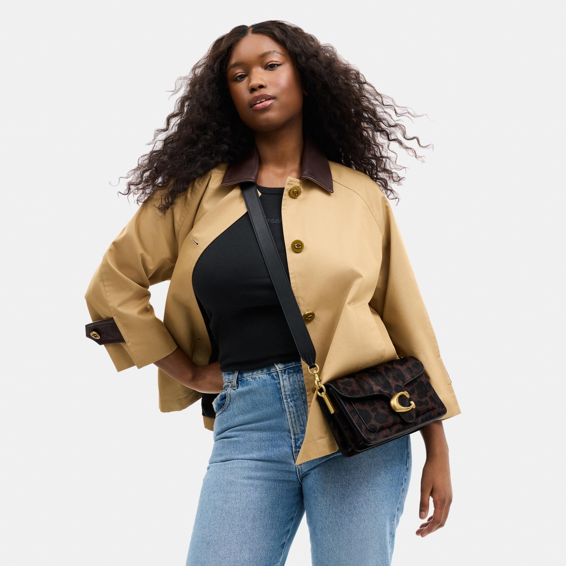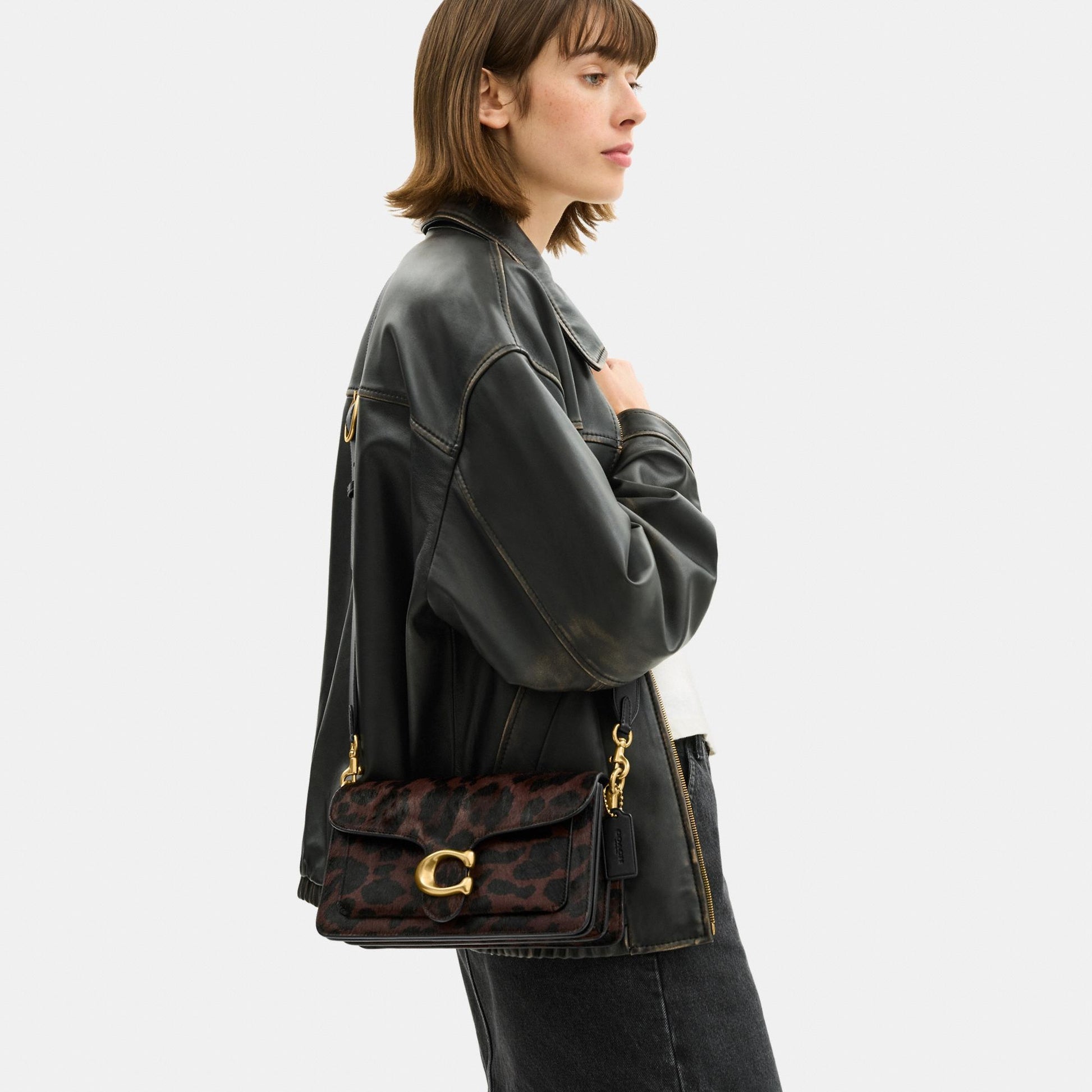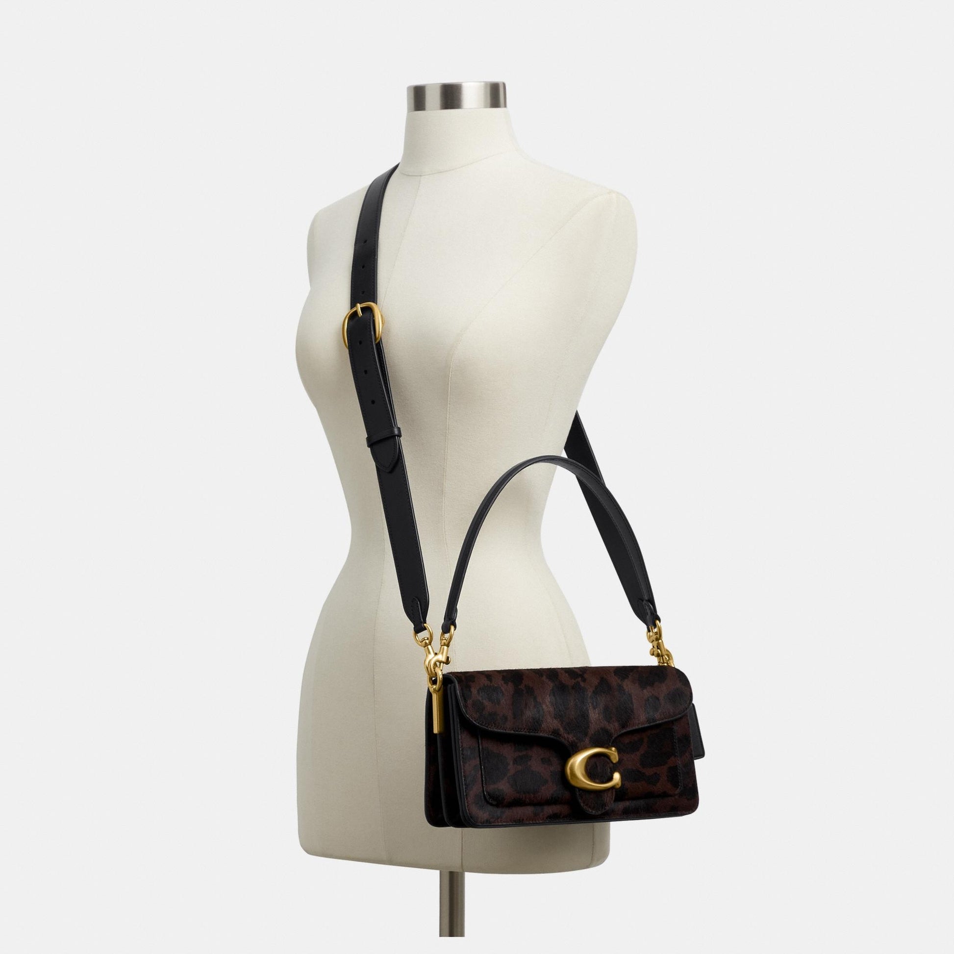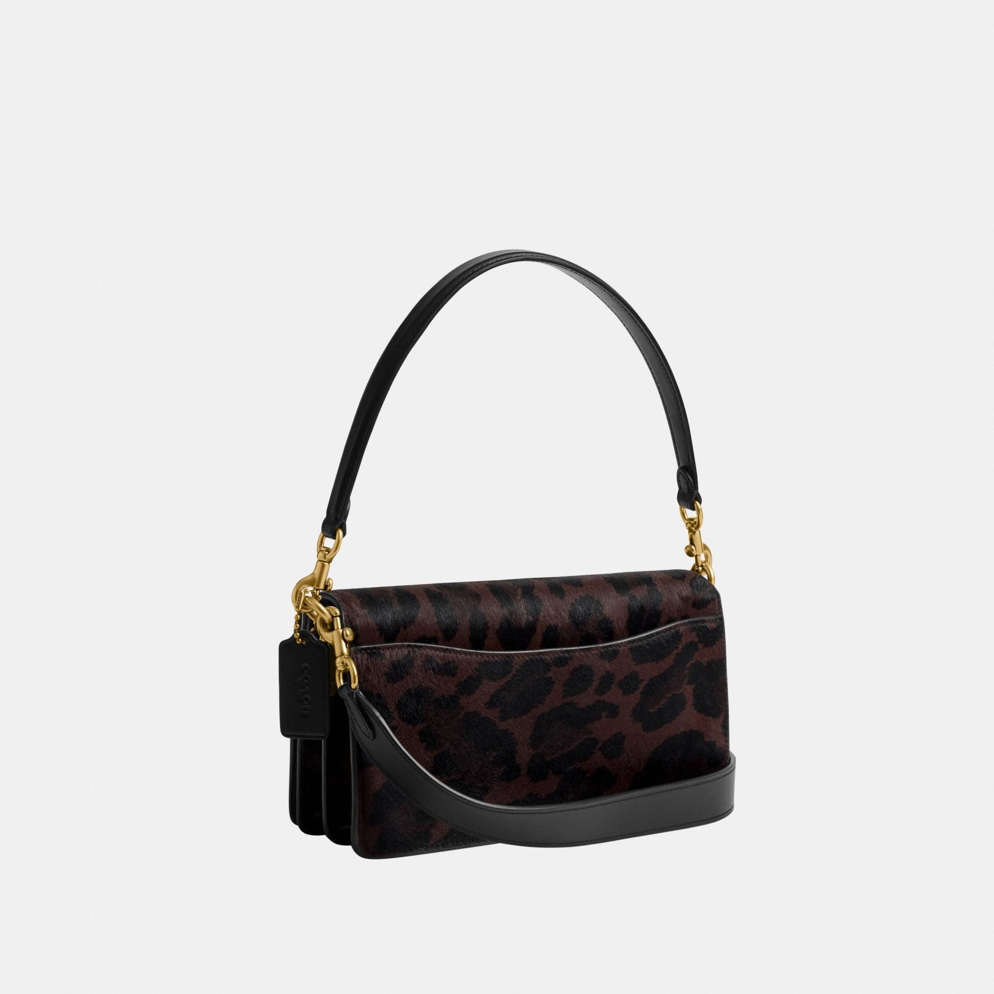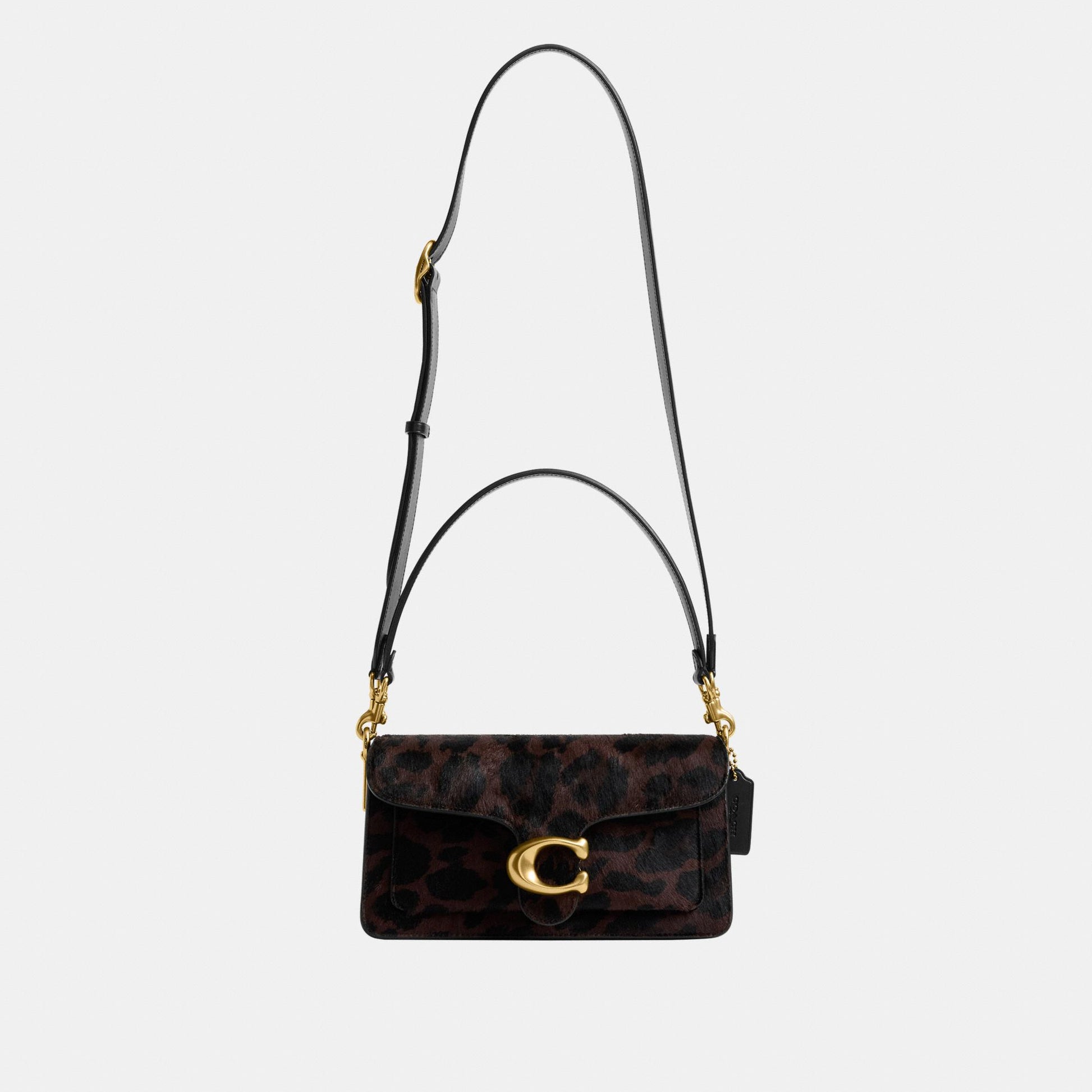 بلمسة عصرية مستوحاة من تصميم أرشيفي لكوتش يعود إلى سبعينيات القرن الماضي، تأتي حقيبة الكتف "تابي" بتصميم هيكلي أنيق مصنوع من جلد فاخر مع شعر مطبوع بنقشة فهد جريئة. يكتمل التصميم بإكسسوار الماركة الأيقوني كلمسة أيقونية مميّزة. النسخة الصغيرة بحجم 26 تتميّز بحزامين قابلين للفصل، ما يتيح حملها باليد، ارتداؤها كحقيبة كتف قصيرة، أو بأسلوب كروس بودي لمزيد من التنوع في الإطلالة.