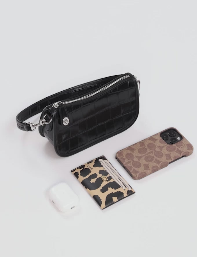 تُعتبر حقيبة "سوينغر 20 Swinger" من مجموعة حقائب كوتش الأصل المستوحاة من الأرشيف، و التي تحتفي بإرثنا و تراثنا الأصيل في مدينة نيويورك. قمنا بإعادة إبتكار هذه الحقيبة بناءً على تصميمات كوتش التي تعود إلى الثمانينات، حيث تأتي بتصميم من الجلد بنقشة جلد التمساح وتفاصيل من الجلد الفاخر. يزدان شكلها بالقفل الدوار المبتكر الخاص بماركتنا، و تتميز هذه الحقيبة الصغيرة بحزام قصير لتوفر لك إمكانية حملها حيث تأتي تحت الإبط مباشرة أو حملها باليد. إنها إحدى تصاميم كوتش المميزة التي يجب أن لاتبقى في الأرشيف.