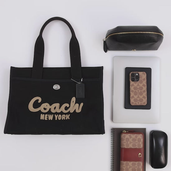 Carry as much (or as little) as you like with our lightweight Cargo tote. Detailed with our cursive Coach script embroidery and iconic turnlock closure, this generously sized 42 has an open interior with room for a 16"" laptop and two outside pockets for easy organization. Crafted to last, this versatile carryall is made with cotton sourced from farms that use regenerative agricultural practices* and inspired by our commitment to reducing our impact on the planet. Now no matter where you go with it, you’ll always be toting around a little extra love for the planet.